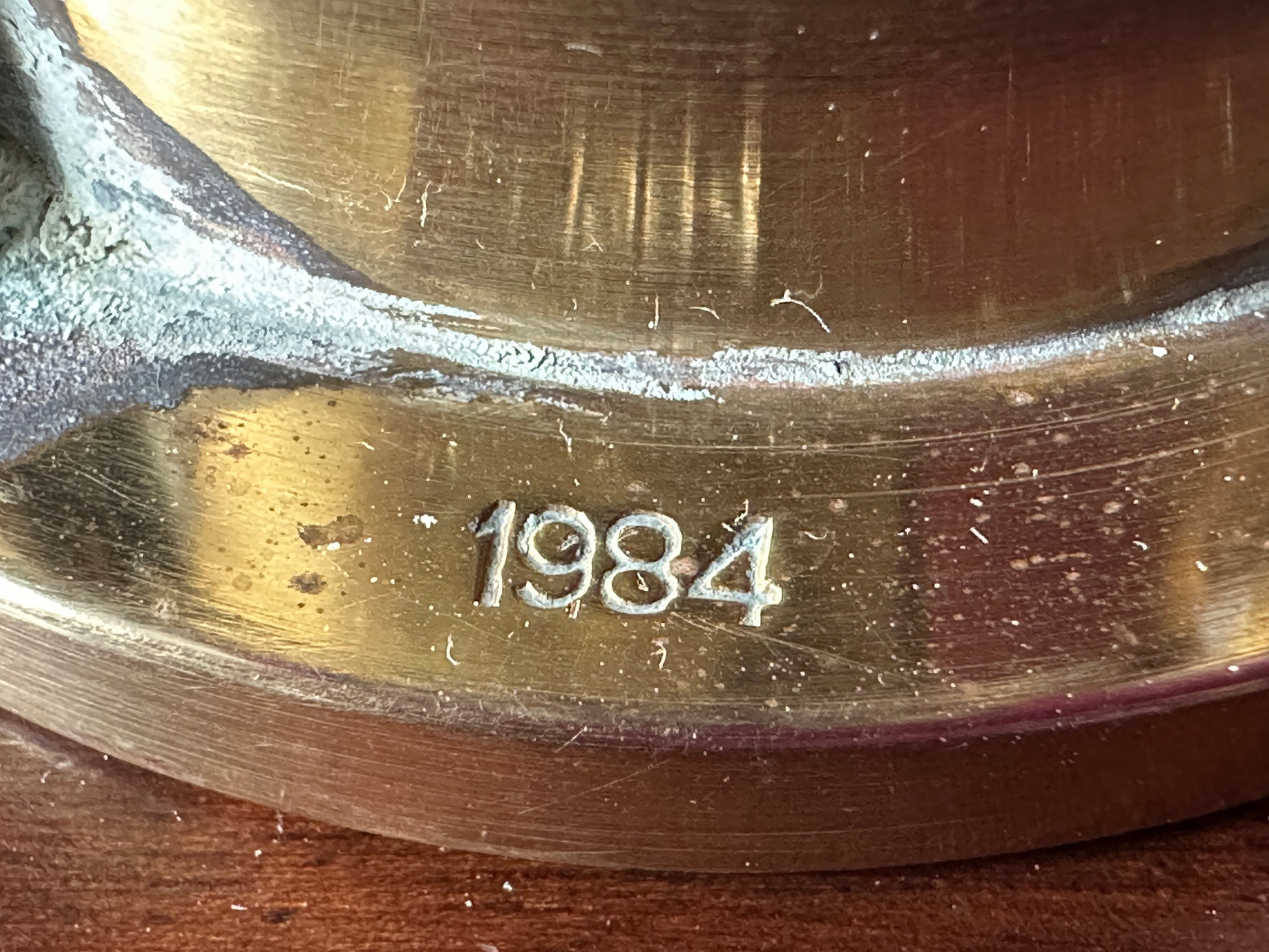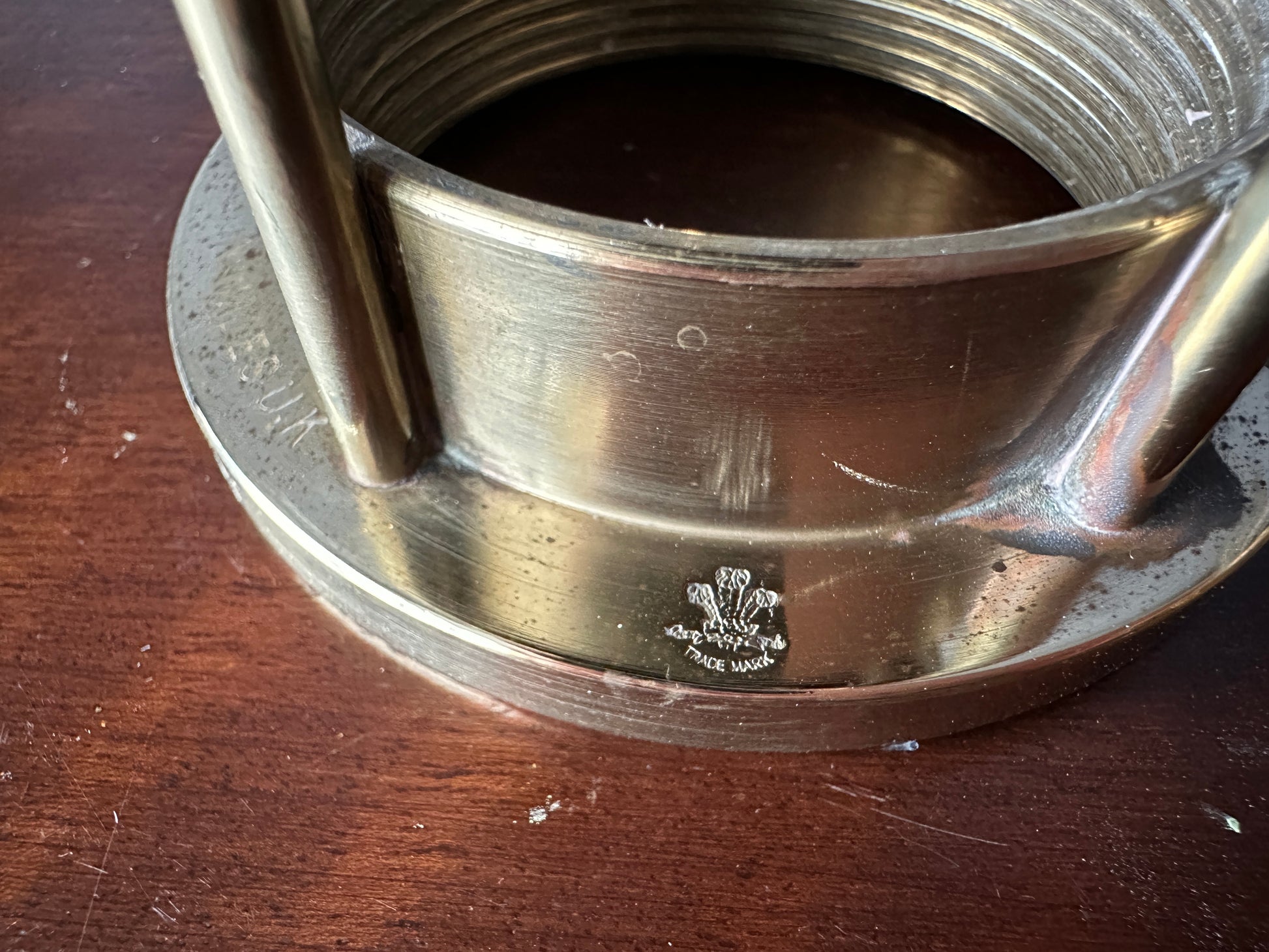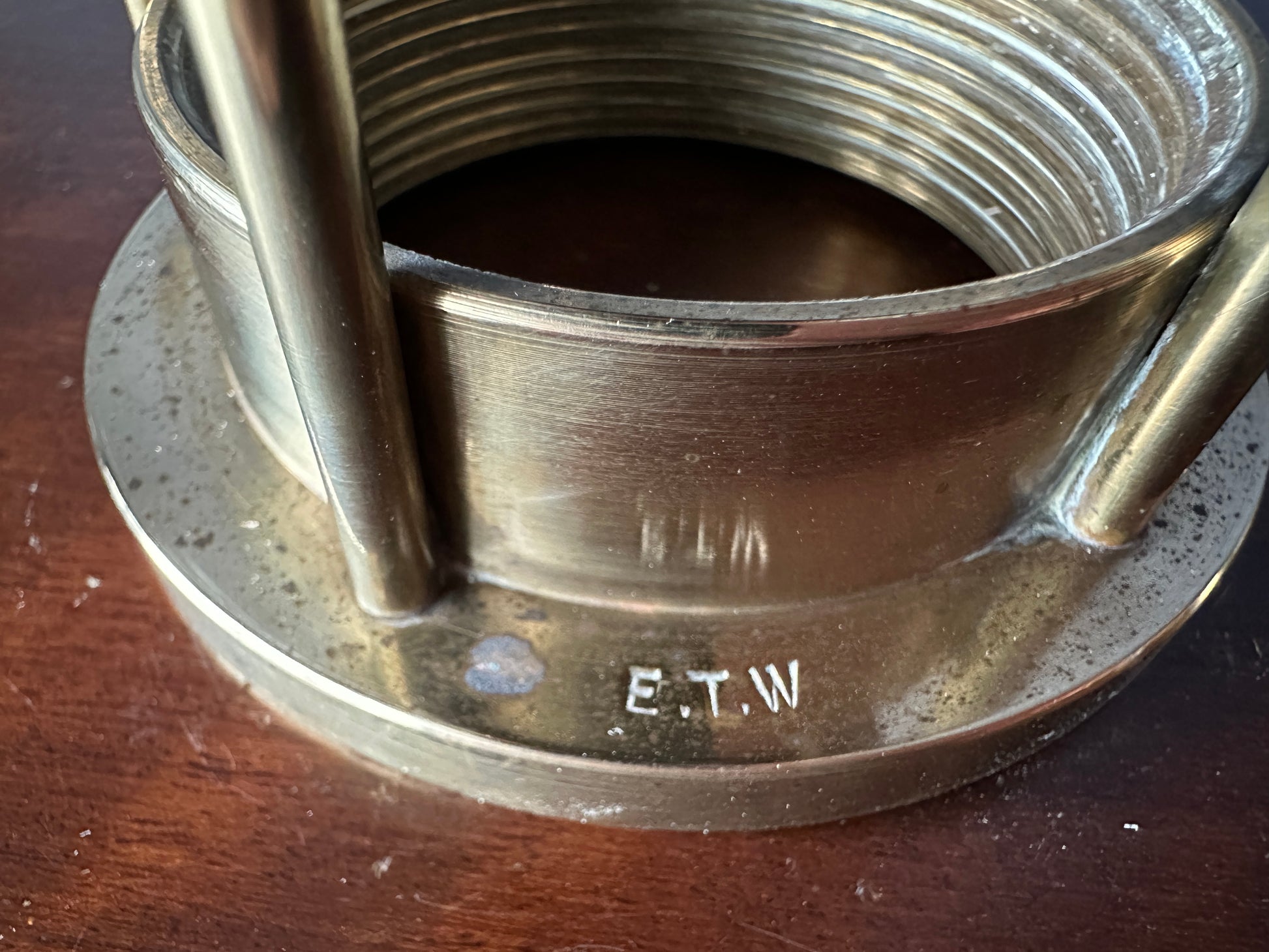 This solid brass replica miners lamp was made by E. Thomas & Williams in 1984.