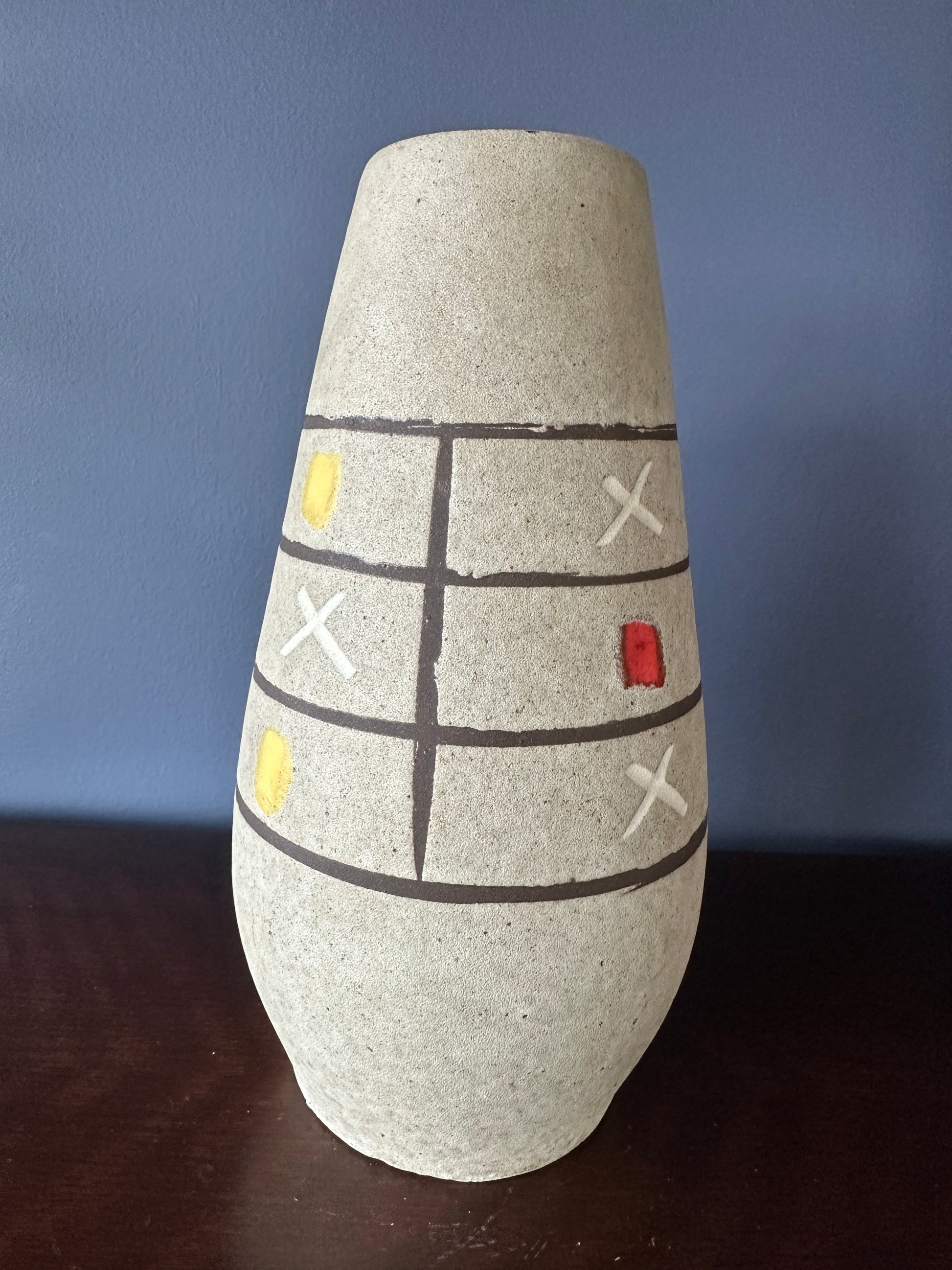 This Scheurich modernist vase was made in Kleinheubach, West Germany between 1958–1961.